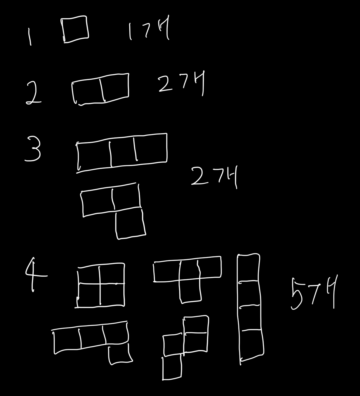 Write a program that takes a positive integer from the user and returns the number of possible different streptosquarus shapes of that size. Notice that there is only one streptosquarus of sizes one and two, but there are two of size three, five of size four, and 12 of size five.